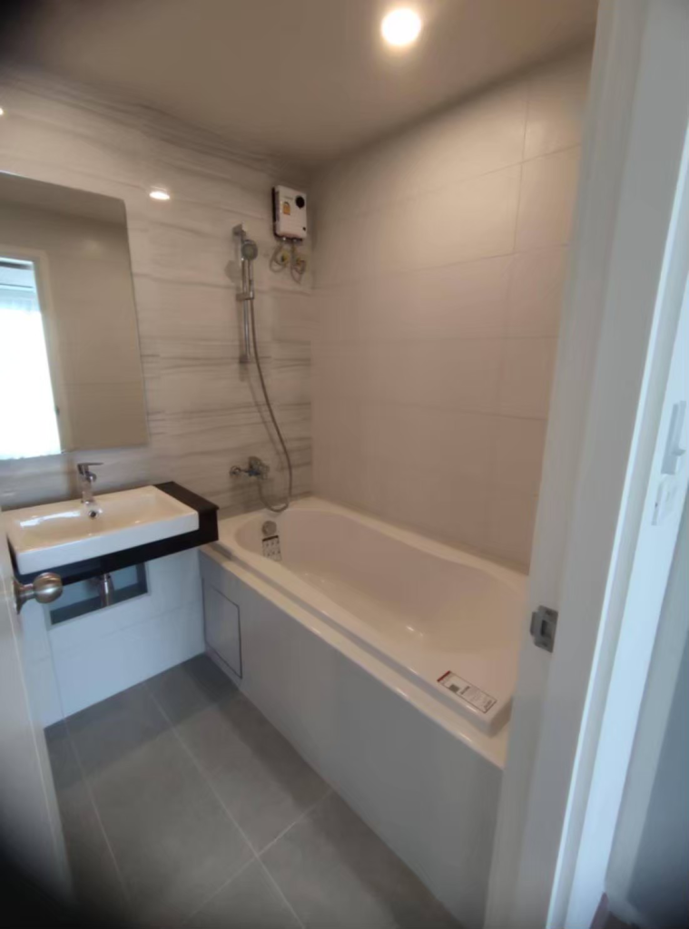 This spacious 64 square meter corner unit at Escent Korat 2 offers 2 bedrooms, 2 bathrooms with bathtubs, and a dedicated dressing room. Positioned on the comfortable north side and fully furnished, this premium residence is located close to Central Department Store Korat. Enjoy top-tier amenities including a salt-system swimming pool, fitness center, sauna, and advanced security features with 24-hour protection.