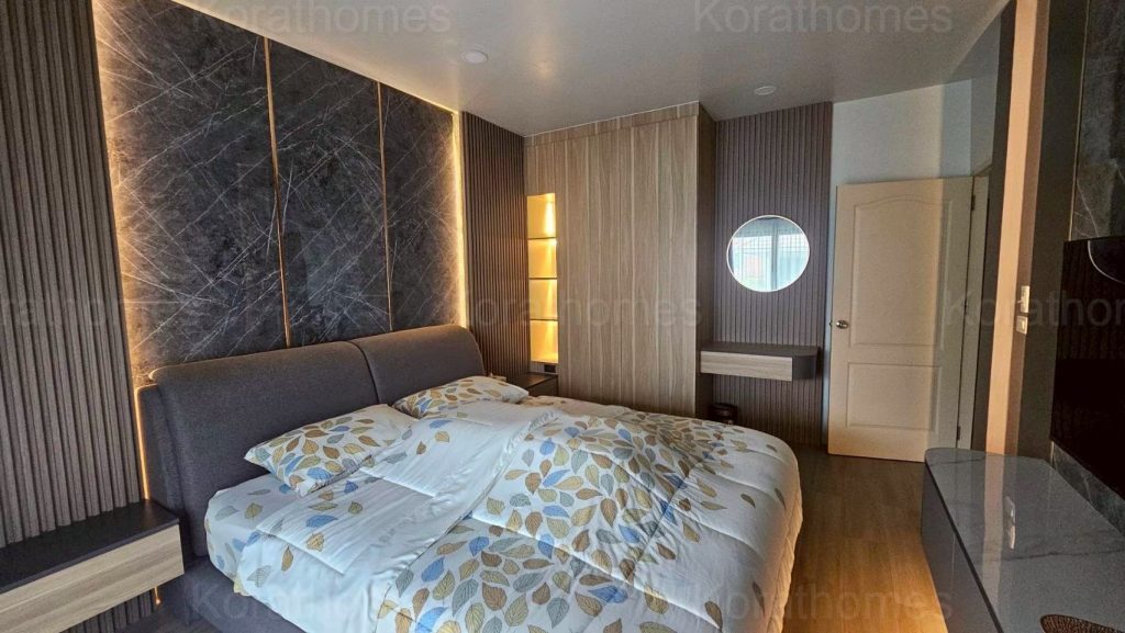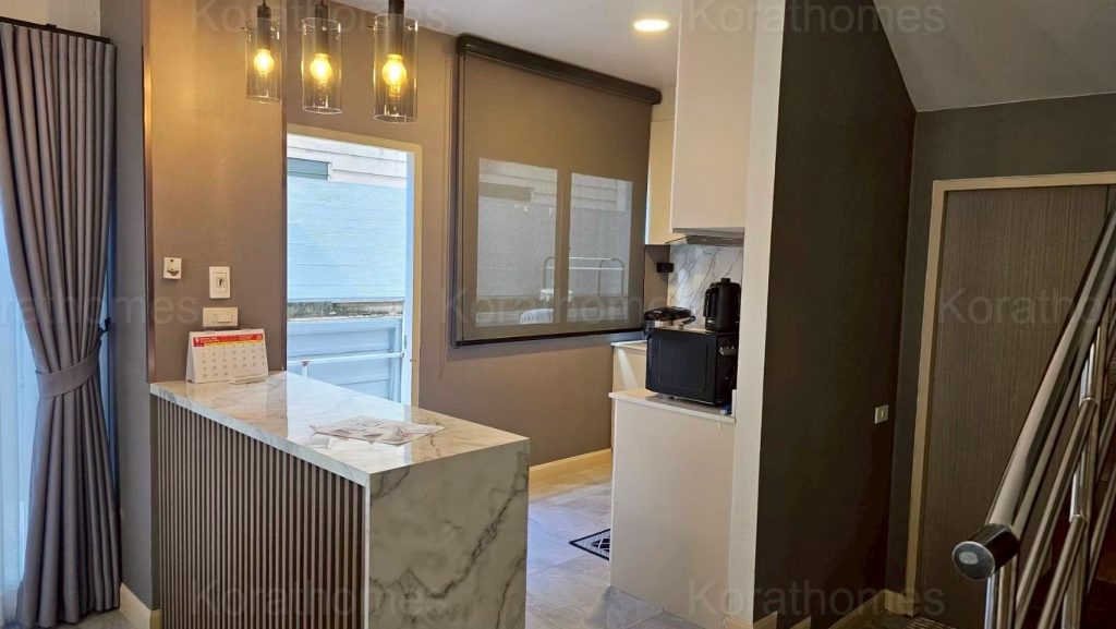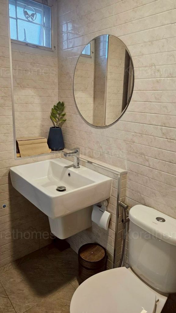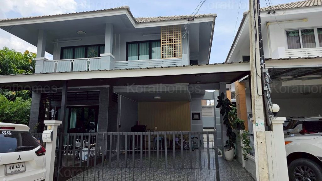 This spacious 3-bedroom, 2-bathroom house in Neo Park Village on Sura 2 road offers 46 square wah (approximately 184 sqm) of comfortable living space for 30,000 THB per month. The property comes fully furnished with furniture and appliances, plus complimentary wi-fi and common area fees included in the rent. Perfect for families seeking a complete home in a well-established neighborhood.
