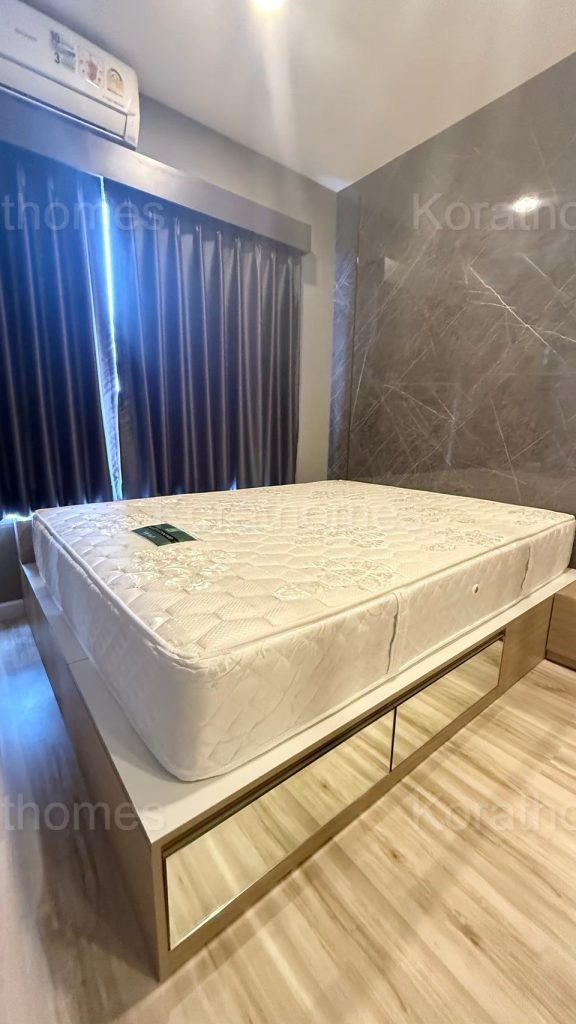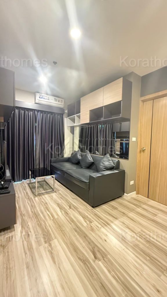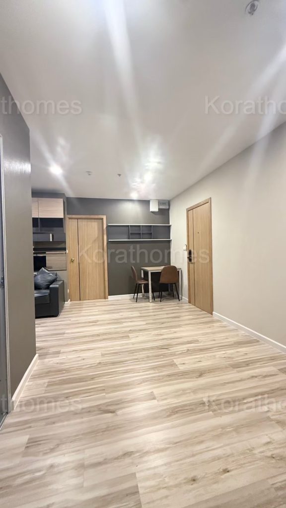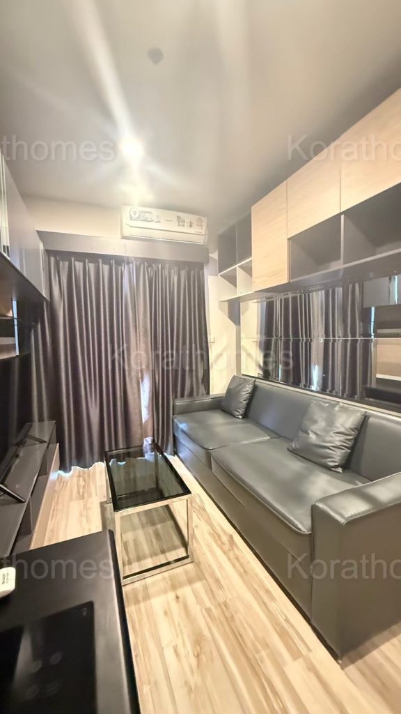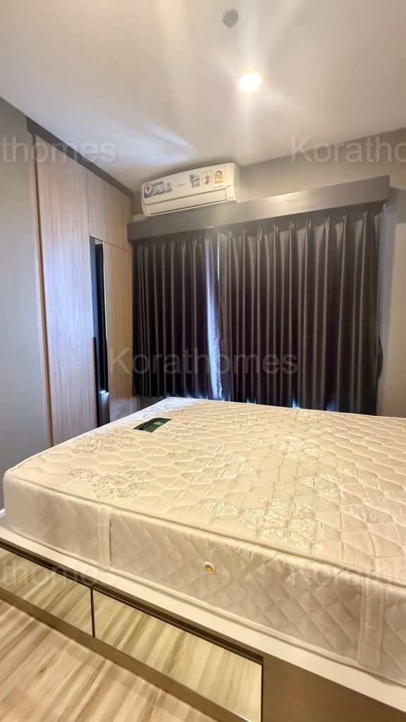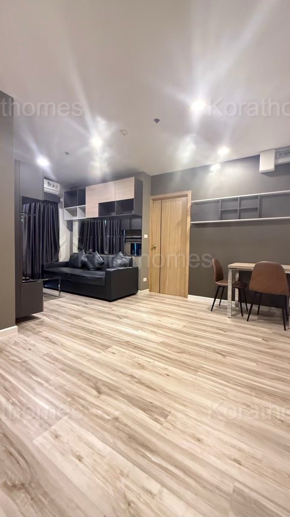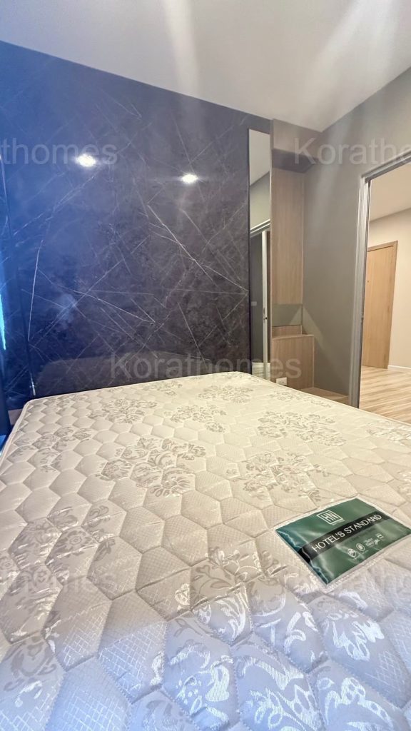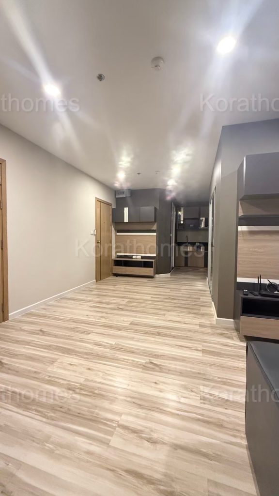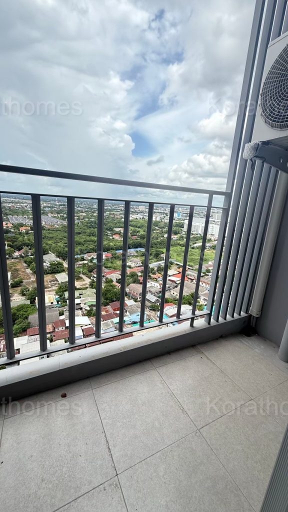 This spacious 57 square meter unit on the 27th floor at Plus Condo Korat offers two bedrooms and two bathrooms for 22,000 THB per month. Fully equipped with modern furniture and appliances including a digital lock door system, this unit provides comfortable living with stunning high-floor views. Enjoy government-rate electricity and a move-in ready home perfect for families or professionals.
