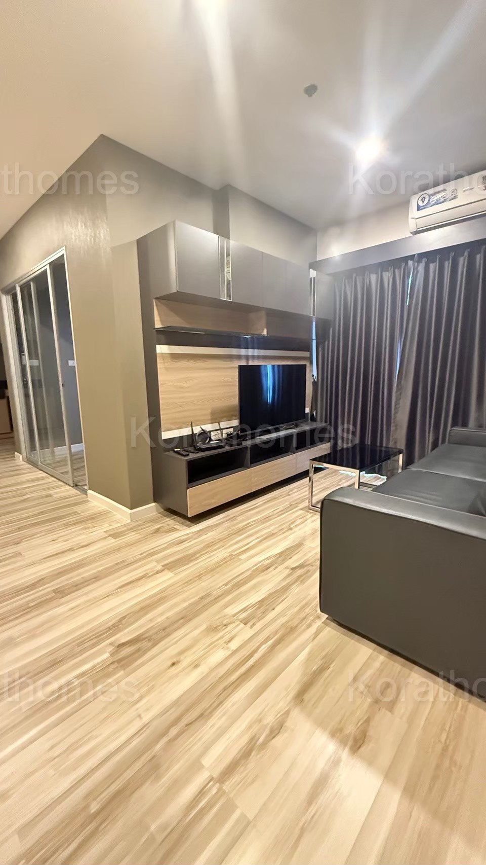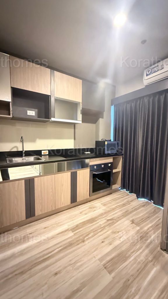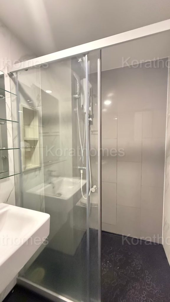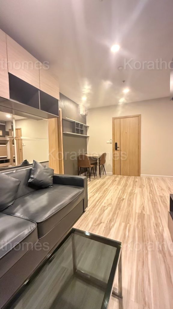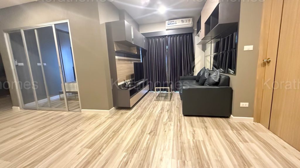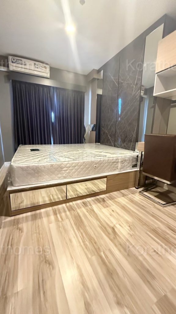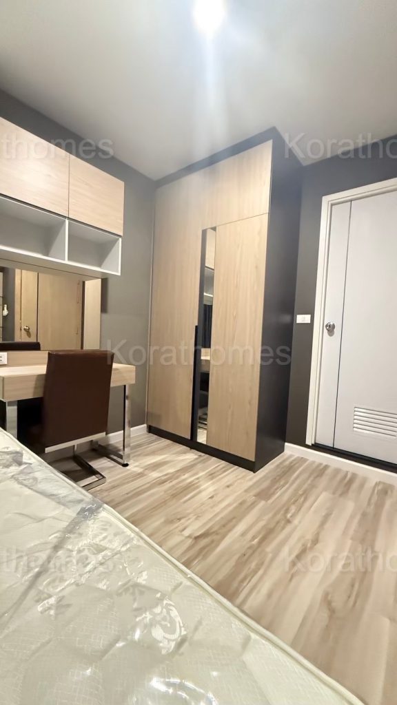 This spacious 57 square meter unit on the 27th floor at Plus Condo Korat offers two bedrooms and two bathrooms for 22,000 THB per month. Fully equipped with modern furniture and appliances including a digital lock door system, this unit provides comfortable living with stunning high-floor views. Enjoy government-rate electricity and a move-in ready home perfect for families or professionals.