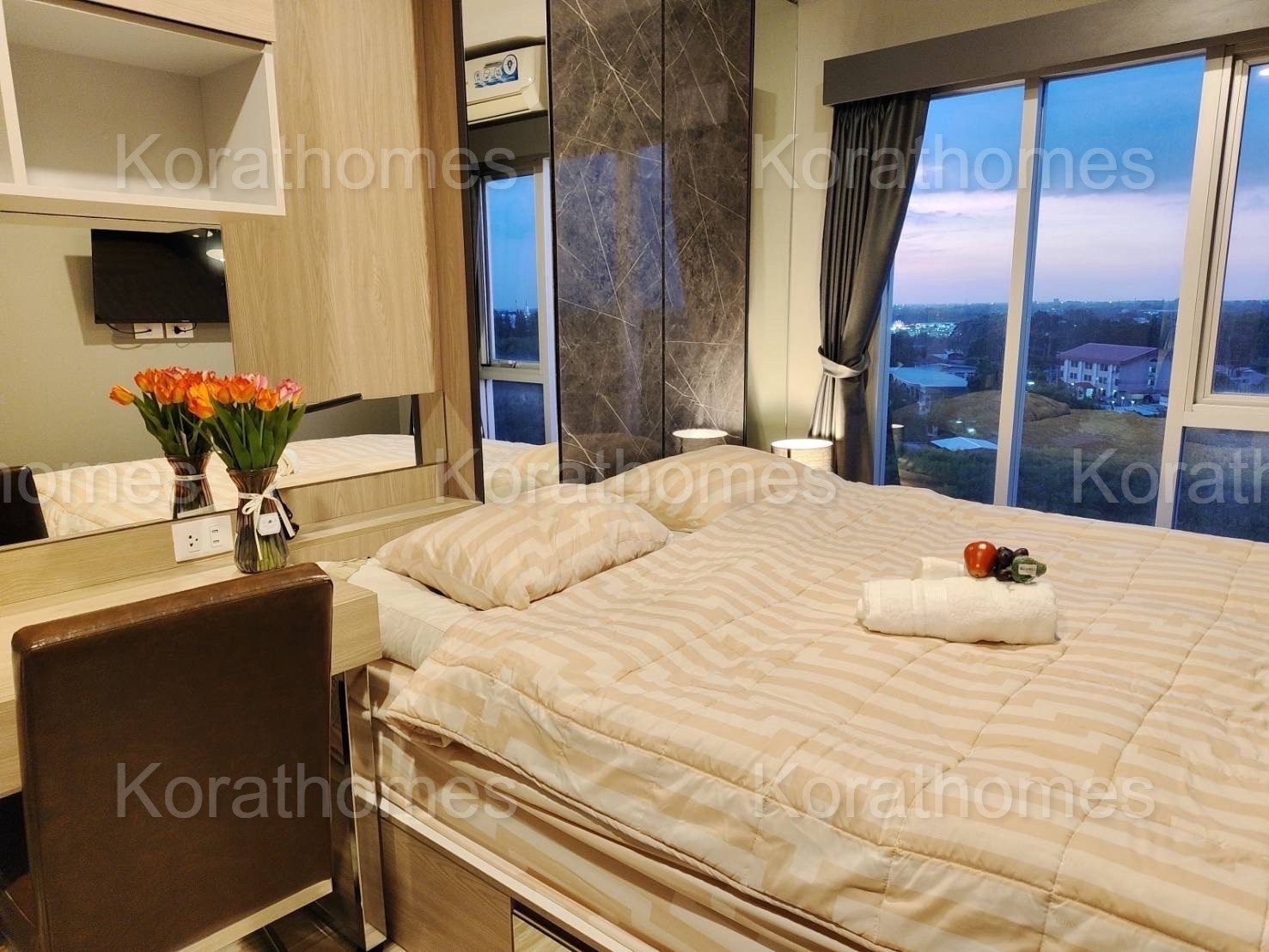 This spacious 60 square meter unit on the 8th floor offers generous living space for 25,000 THB per month. Featuring two bedrooms and a complete set of furniture and appliances, this unit is ideal for families or those seeking extra room. Enjoy government-rate utilities and a fully equipped home ready for immediate move-in.