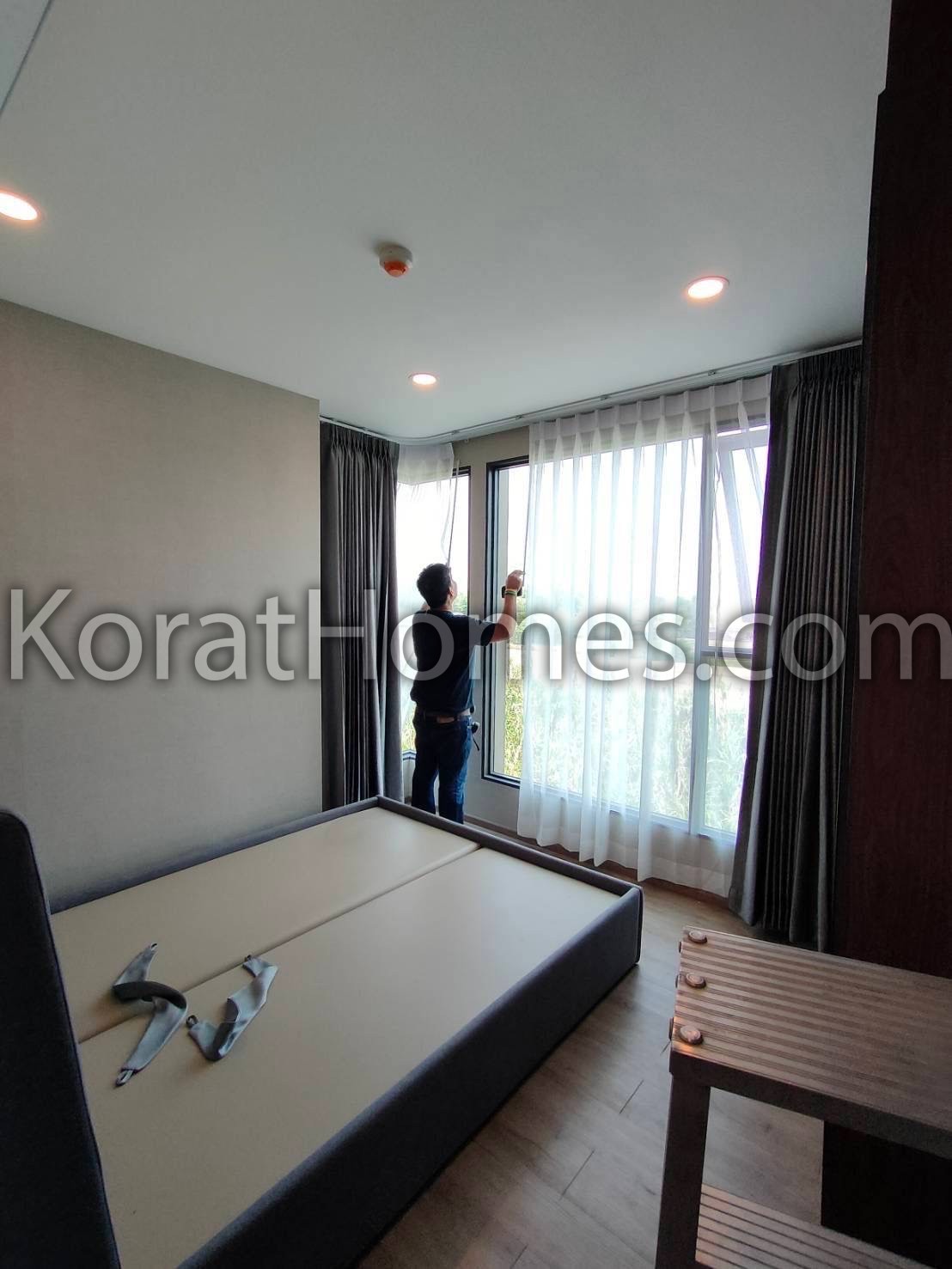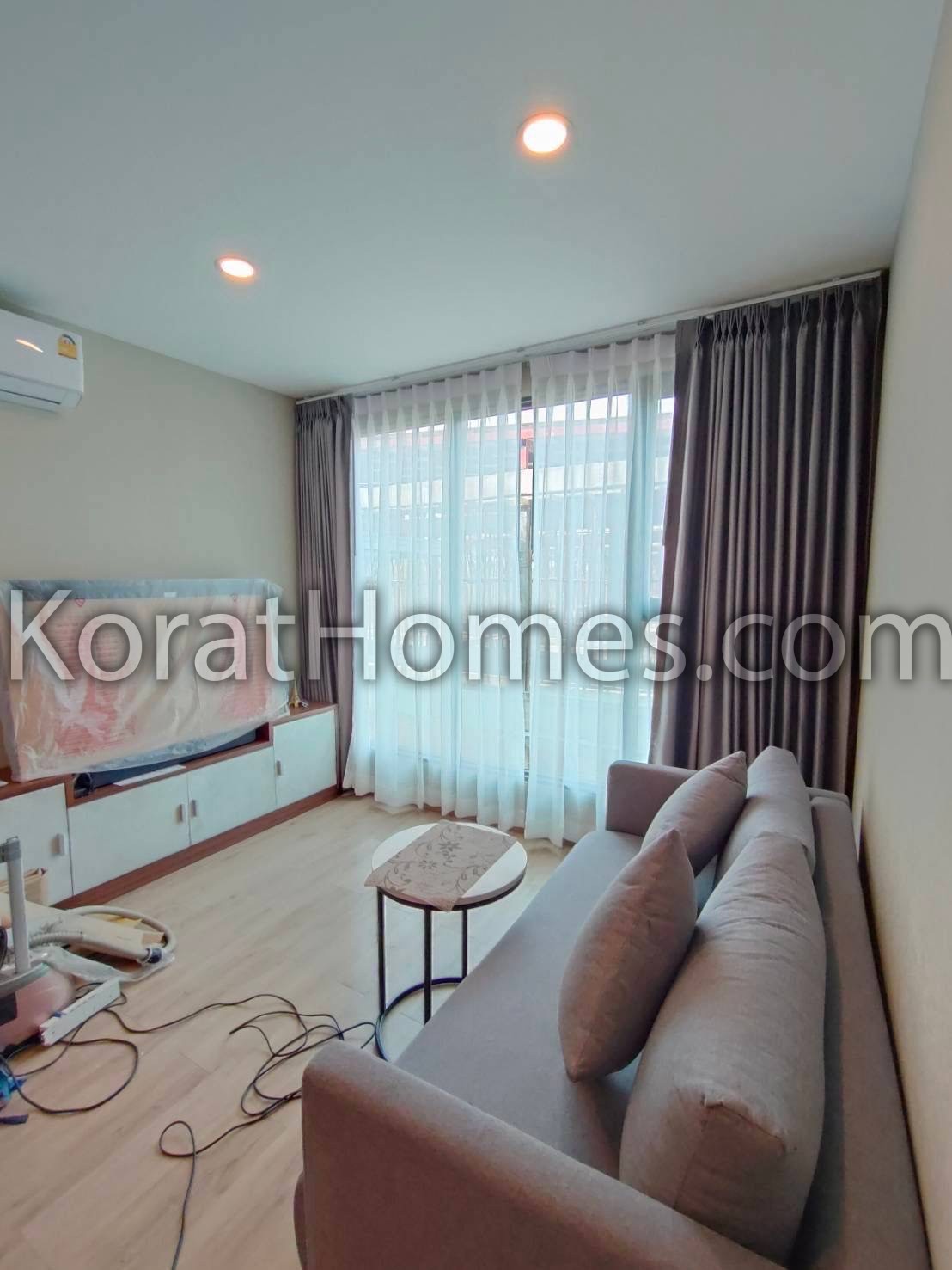 New Condo, located on the north side of the building, cool and shaded, 46sqm New Boutique building. Fully furnished, with mattresses and curtains